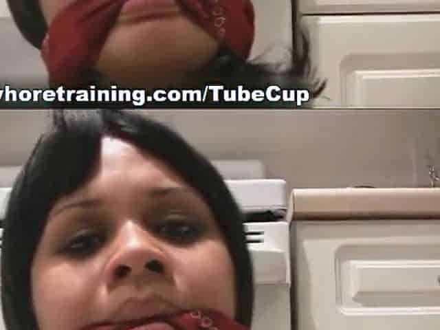 Young whore drinking piss in a bowl