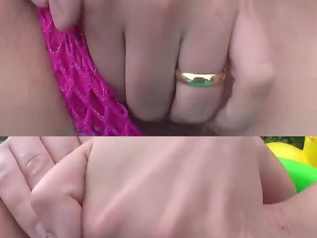 Ariadna dives in piss while dildoing herself