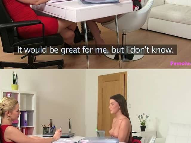 Sexy blonde seduces delicious brunette in casting interview