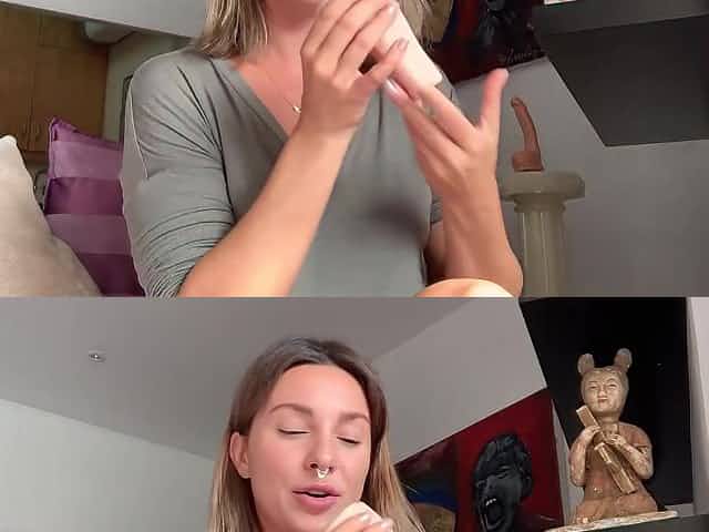 Old Blonde Lady From Germany Having A Great Time With Her Glass Dong