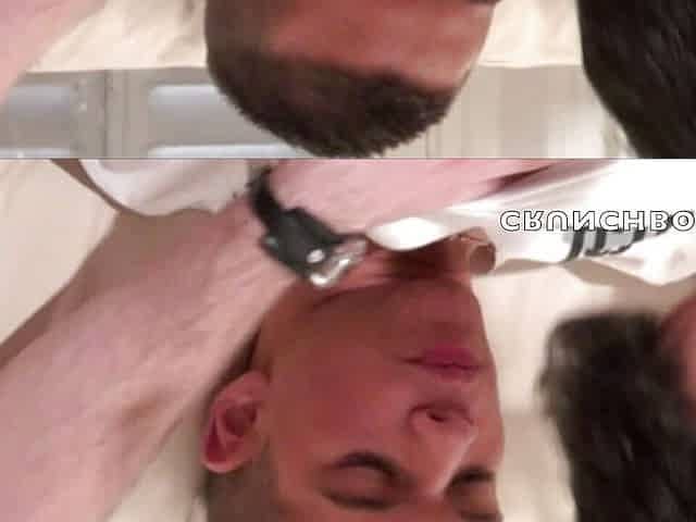 Teabagged straight twinks sucking cock