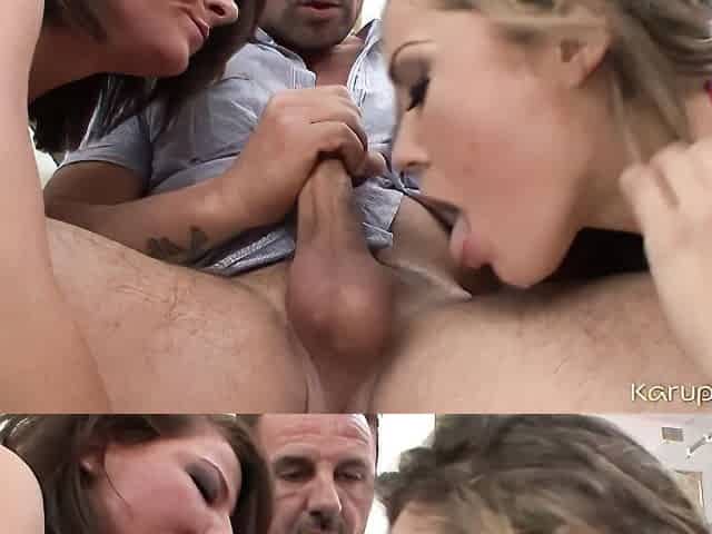 Two German Ladies Pleasing Cock Together in Threesome