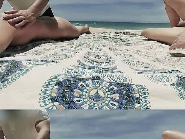 SEXWIFE JERKS OFF LOVER'S WEENIE AND HELPS HIM CUM