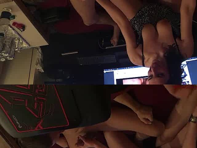 Amateur Homemade Threesome with a Blowjob and Facial