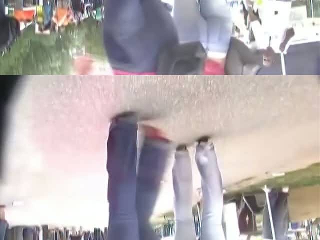 Sweet ass blonde girls get followed by a voyeur cameraman on a festival