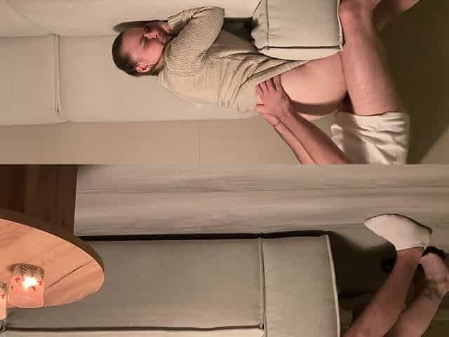 Amateur wife gives a handjob while her soles are worshipped and a thick load is released