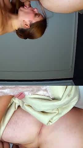 Amateur wife Dorotkahotpsotka gives a blow job to her roommate