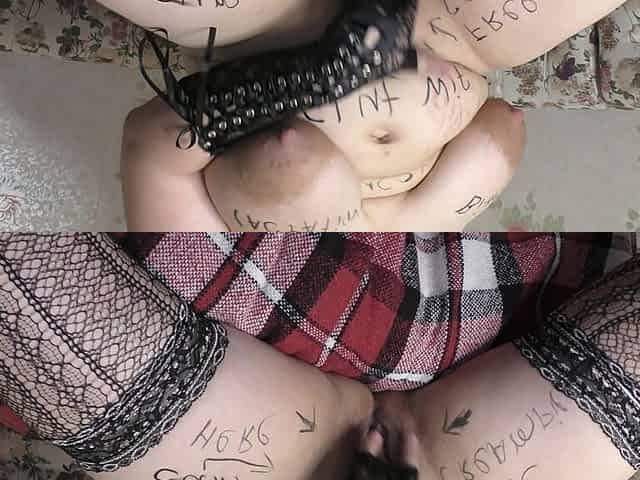 Big boobed pregnant slut wife covered in dirty body writings by her own cuckold hubby before gangbang! - Milky Mari