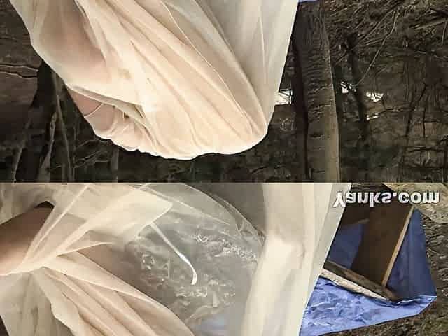 Woman masturbates and ejaculates through pantyhose