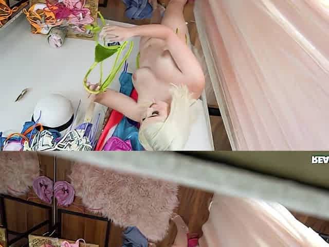 Small boobs blonde Cherry Jul teases with her amazing ass and cunt
