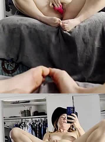 Stepsis loves me - lucky dude caught his blonde stepsister playing her pussy with dildo