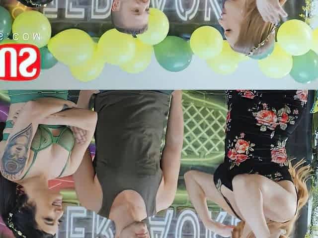 Crazy sex with two big tits blondes and a big dick