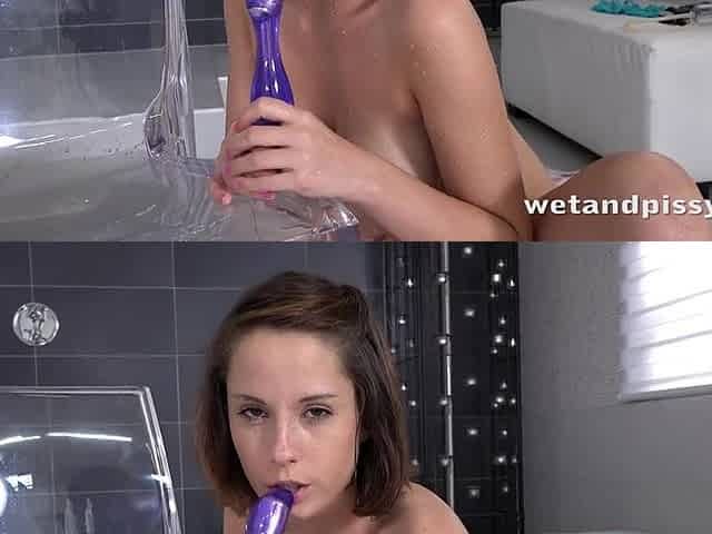 Anabelle Lili plays with dildo and spills milk on her body