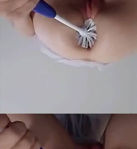 Brutal Anal Torture with Toilet Brush Pushed into Tight Little Asshole