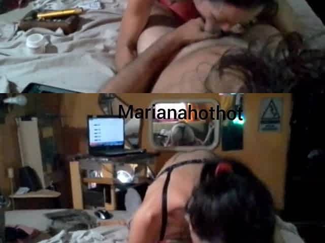 My girlfriend strips, shows her bazookas and I make a lascivious episode.