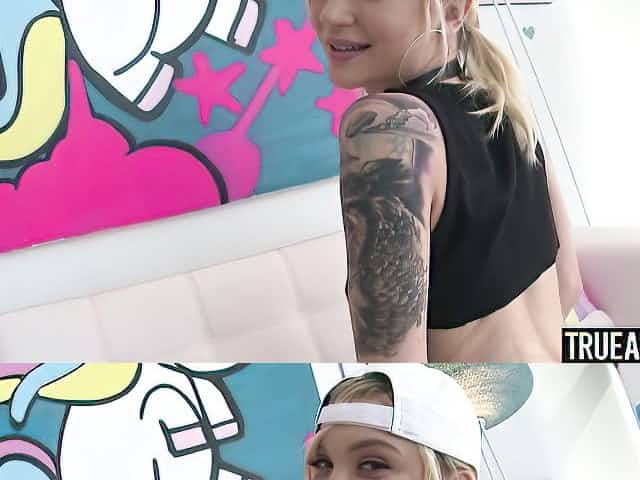 Beautiful inked blonde Dakota Skye anally fucked from behind