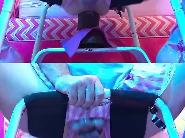 Transgirl screwing herself with sextoy and machine