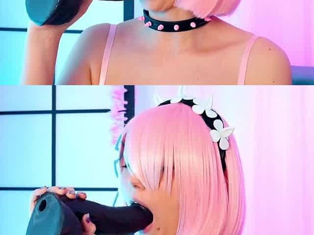 Big tits cosplay girl and her alter ego are having fun with toys