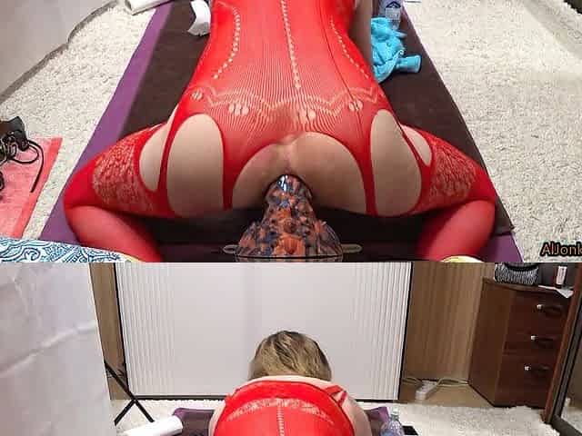 Sissy in a red outfit has joy with large toys, part 4 Last