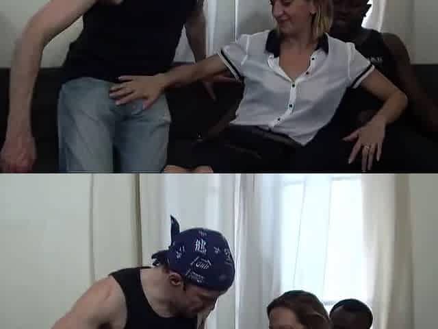 Big tits blonde european double penetrated by two black men