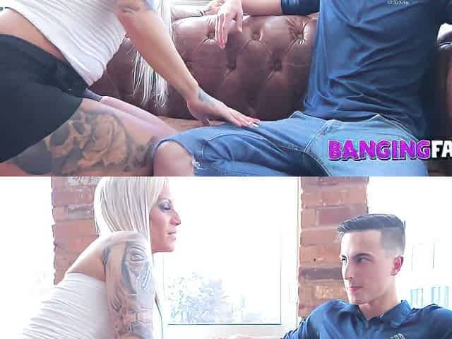 Beautiful blonde milf gives great blow job and anal sex to her son’s friend.