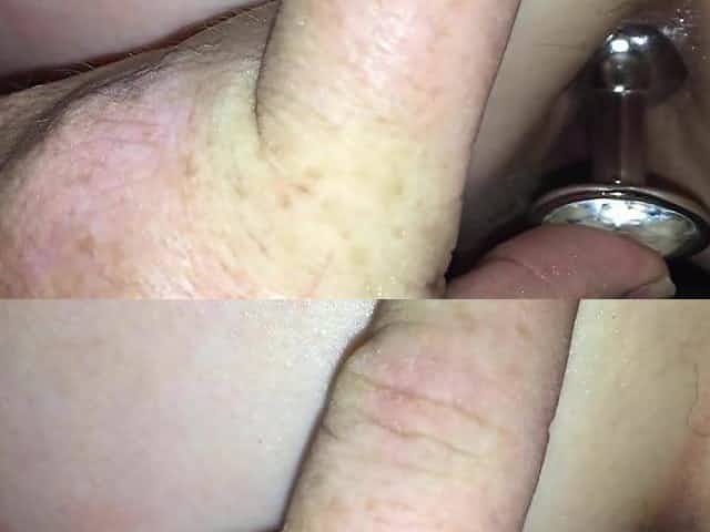Inserting her first butt plug