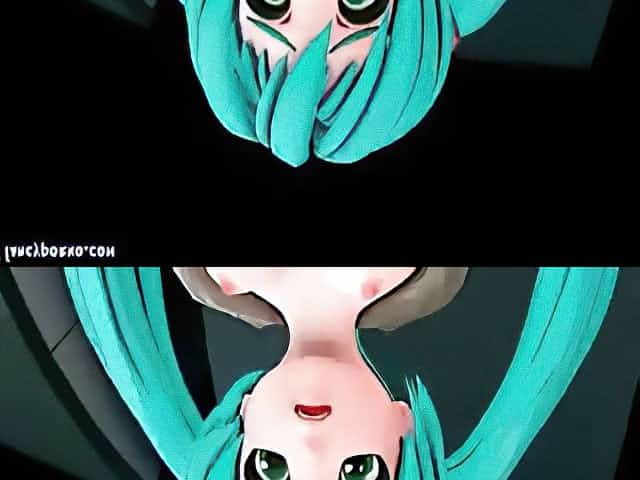 Animated rubs cock with her tits