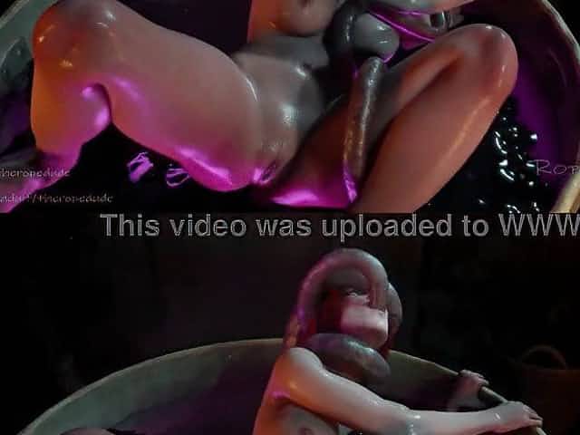 Triss gets roughly drilled by tentacles in her bathroom