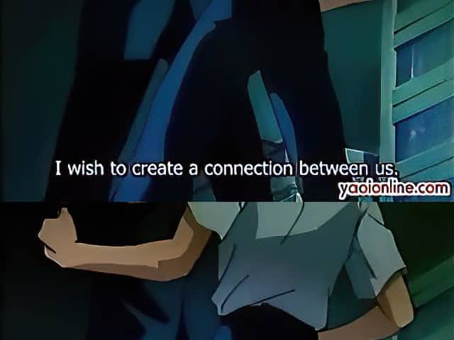 Two hentai guys having hot night kiss