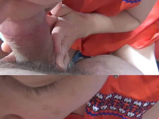 Japanese cutie wearing an apron pleases a man with a blowjob