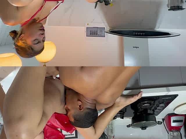 Apron on, but underneath... nothing My boyfriend takes me in the kitchen
