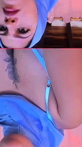 Tattooed latina shows off her big natural tits while masturbating on webcam