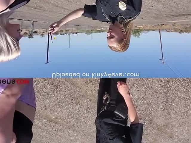Big boobs female cop arrested a petite teen vandal