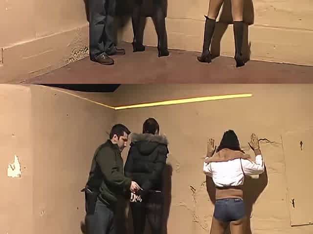 Beautiful woman is arrested and undressed by a policewoman