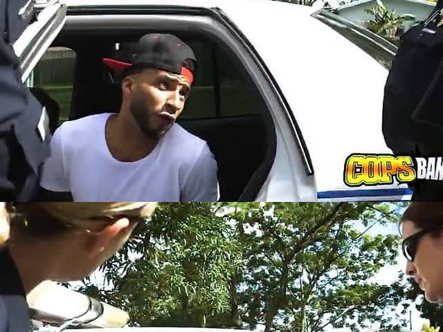 Black guy arrested made into threesome busty cops