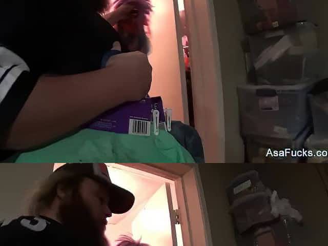 Asa Akira sets up two cameras for you to see her get nice and horny
