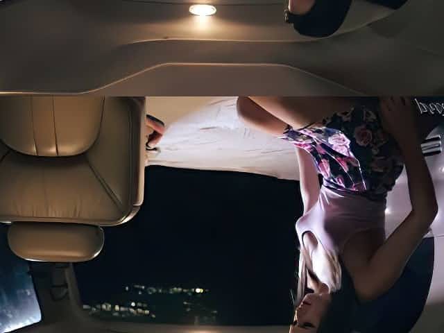 Plumpy Asian prostitute in red lingerie Ashley fools around in car