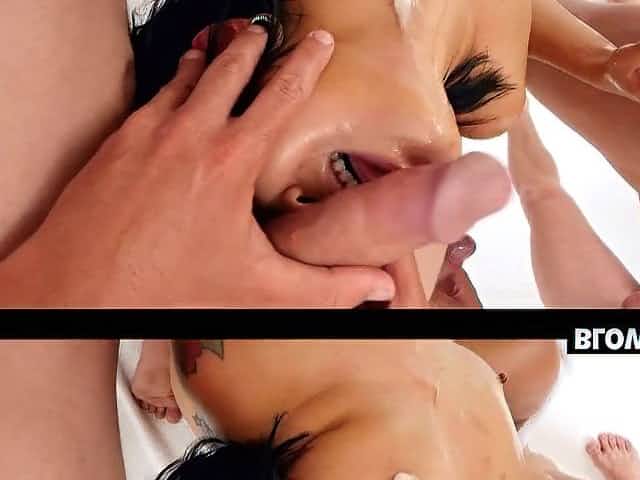 Oiled nice ass Asian ravished hardcore missionary in mmf porn