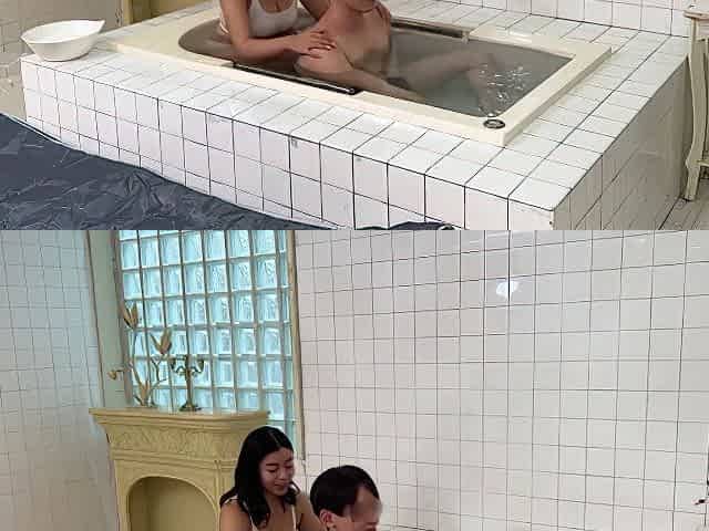 Asian seductress lets her lover wash her seductive body