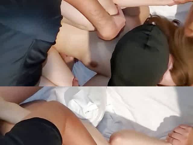 Masked girl getting used by three dudes