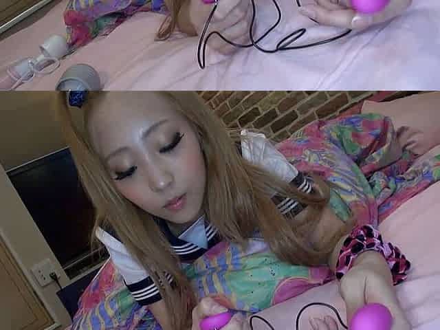 Blonde japanese babe squirts a lot while getting her pussy satisfied and fucked by a few men