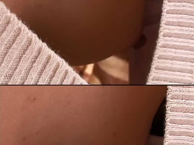 Hot Japanese slut downblouse grey pulloever round nipples big tits