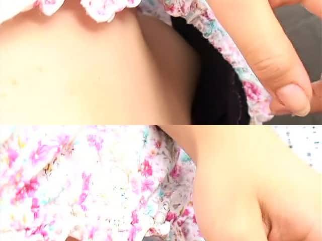 Downblouse videos show a cute Asian girl with small tits.