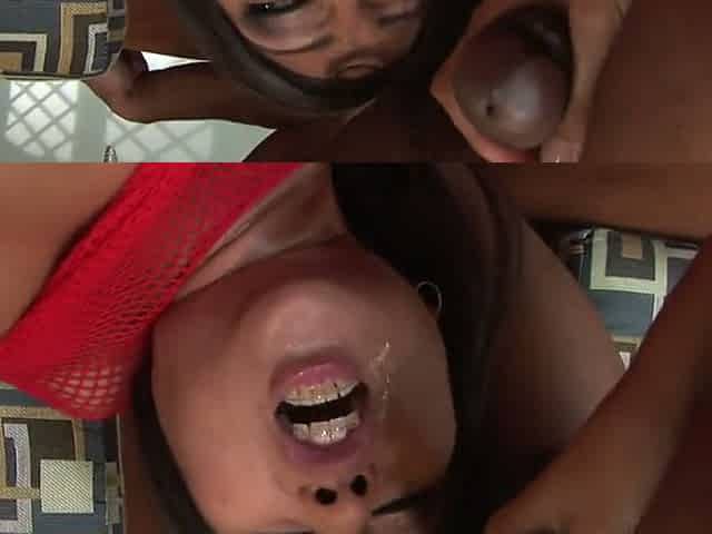 Sticky facial for Arcadia Davida after a wild MMF threesome