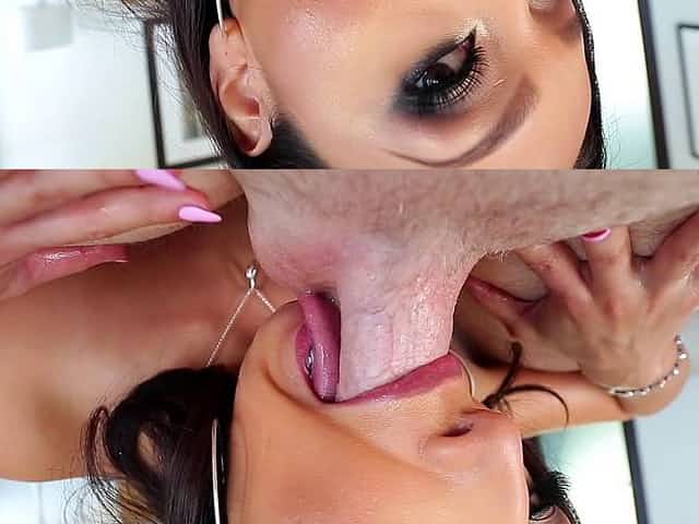 Dirty chick Vicki Chase licks his balls and stiff cum gun