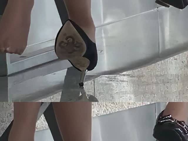 Candid Asian Shoeplay Dipping Feet In Nylons Stewardess