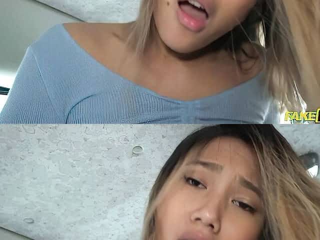 Asian teen with small tits Mai Thai rides on the backseat