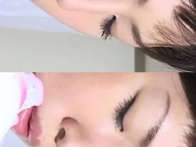 Cocksucking skills of the adorable Asian girl with purple lips