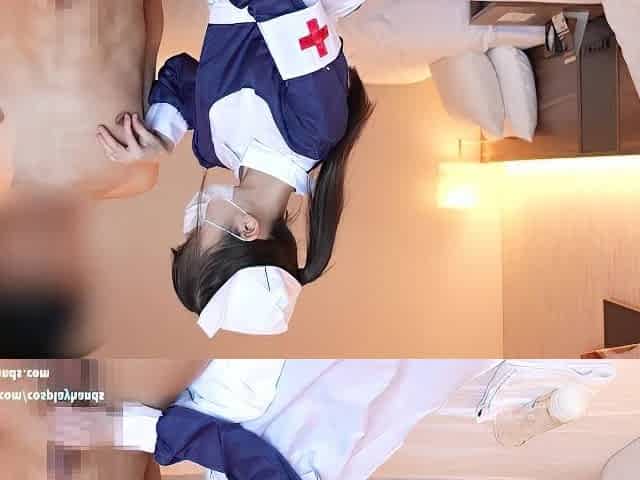 Japanese nurse gives a guy a handjob while showing her panties