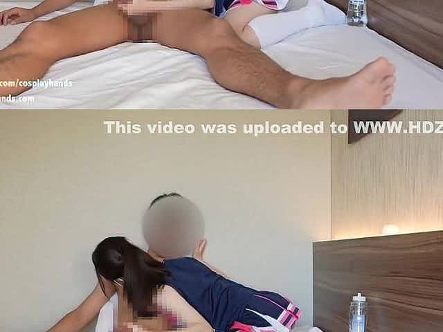 Japanese Girl Cosplayed As A Cheerleader Gives A Guy A Hand Job Showing Her Panties